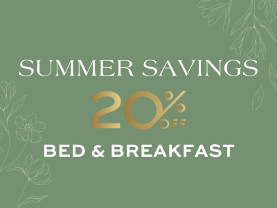 Enjoy 20% discount of our best available Bed & Breakfast rates for stays throughout July 2026.
